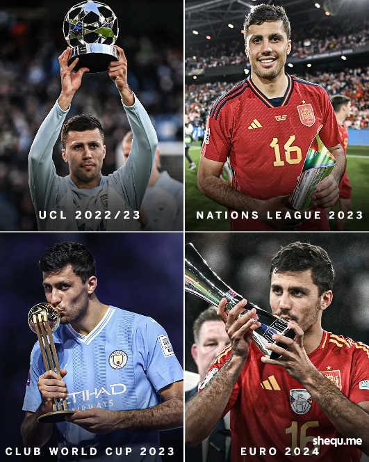 斗牛士军团在2008年欧洲杯、2010年世界杯和2012年欧洲杯实现大赛三连,但伊涅斯塔和哈维都与金球奖失之交臂,如今罗德里超越了前辈,写下了西班牙足球的又一里程碑。他的获奖还打破了梅西和皇马对金球奖长达15年的垄断,正式开启了一个群雄并起的乱世新时代。